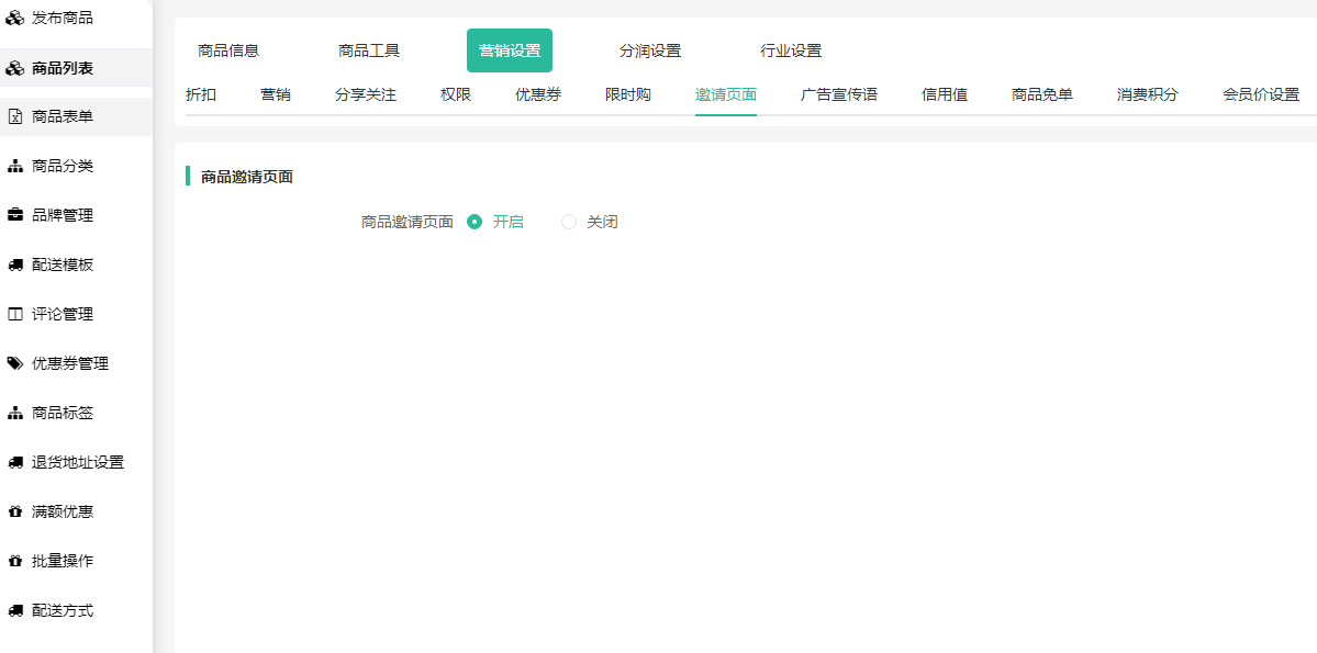 商品邀请页面支持根据具体商品设置开关,针对单个商品提交订单才会显示邀请页面(商品邀请页面会员确认之后就不会再显示的了,只会显示一次)